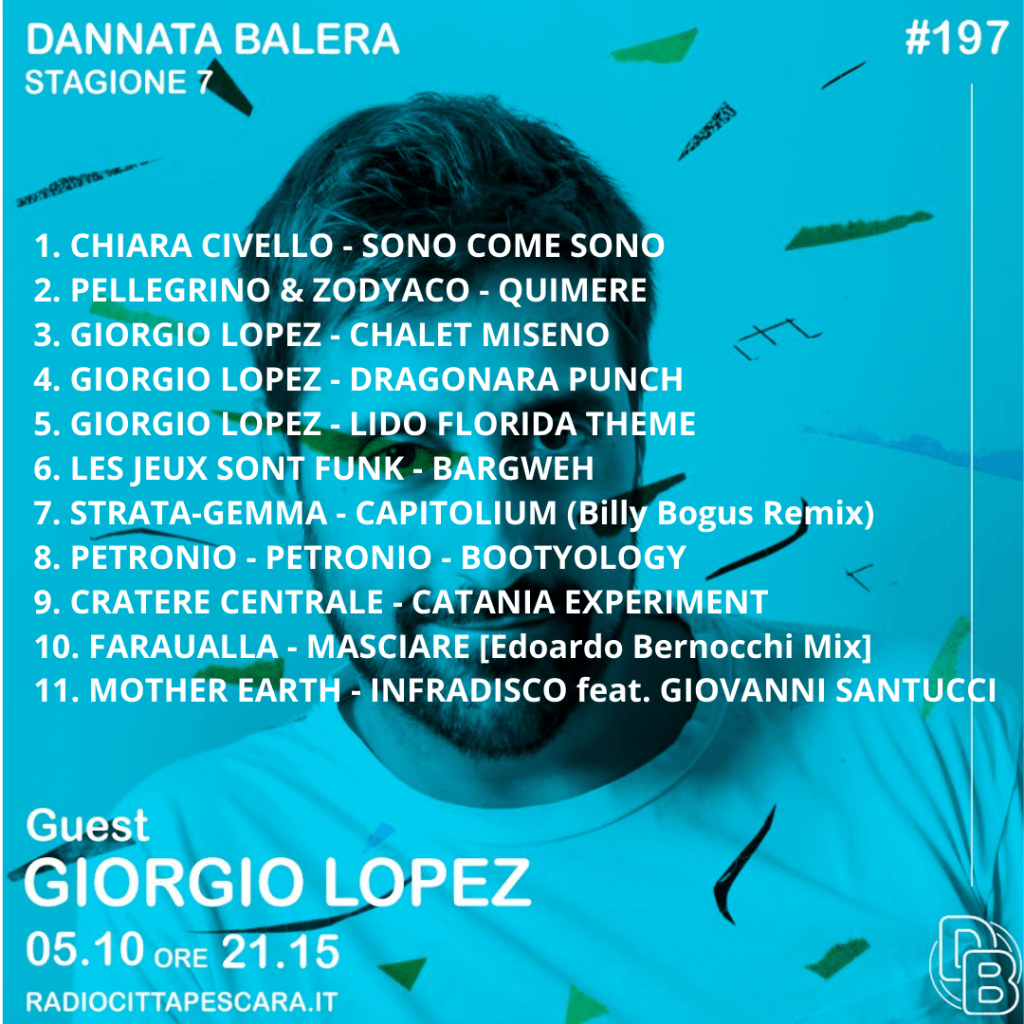 Ospite nella prima puntata della nuova stagione Giorgio Lopez che ci racconterà il suo LP “Chalet Miseno”, appena uscito per la Horisontal Mambo di Prins Thomas , in cui continua il suo evocativo viaggio nei luoghi del cuore al ritmo di boogie balearico.