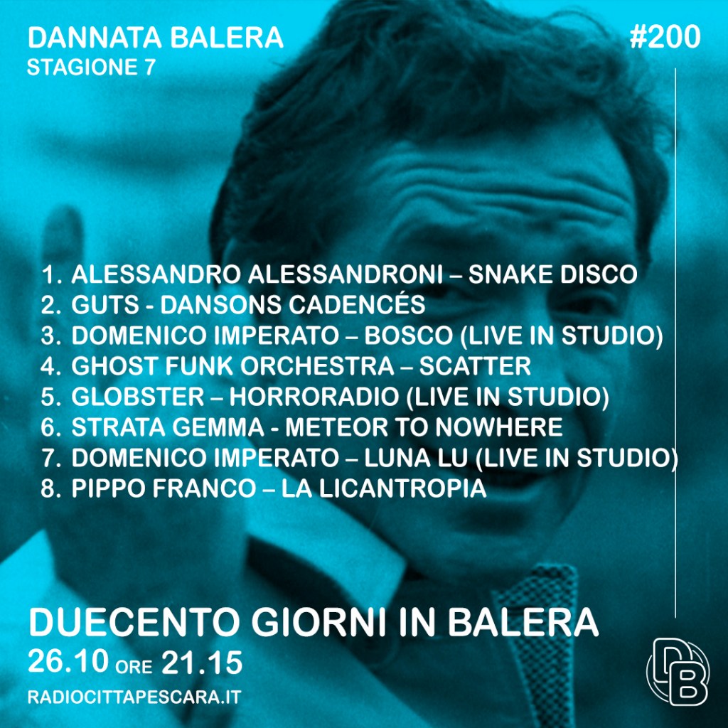 Puntata/party all’insegna della #balerafamily con Domenico Imperato e il suo nuovo singolo Bosco, una nuova anteprima dal disco di Strata-Gemma Globster e i suoi giocattolini, il collettivo giallofemminista Jessicafletcher, gente di passaggio, telefonate anonime, ceppetti al citofono e gran rogo finale di bollette Enel.